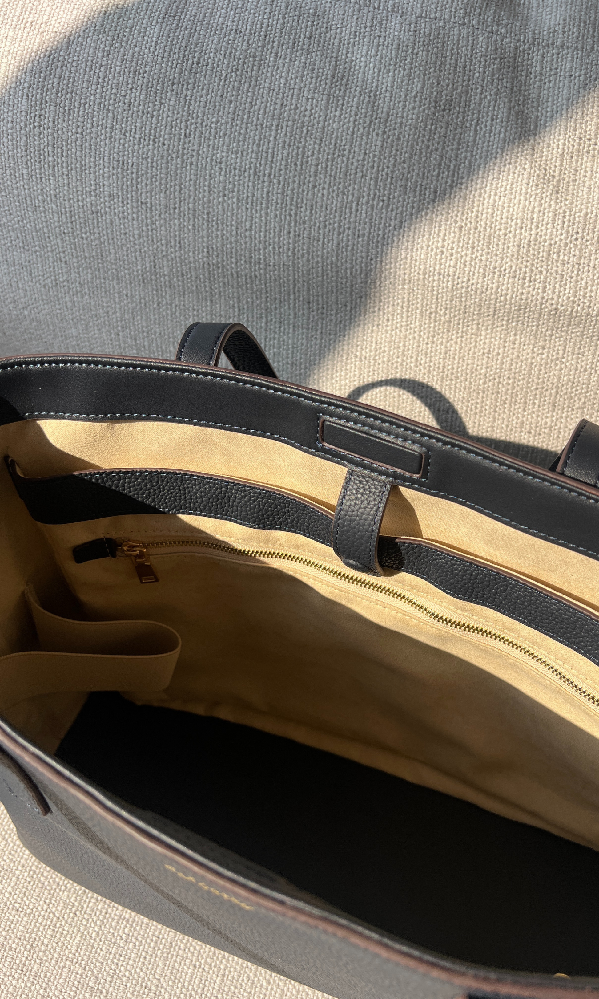 Crafted from premium European Togo leather, the Ashberry Smart Tote bag blends clean elegance with uncompromising functionality. Known for its stratch resistance, soft texture, and structured shape, this tote is built to last.