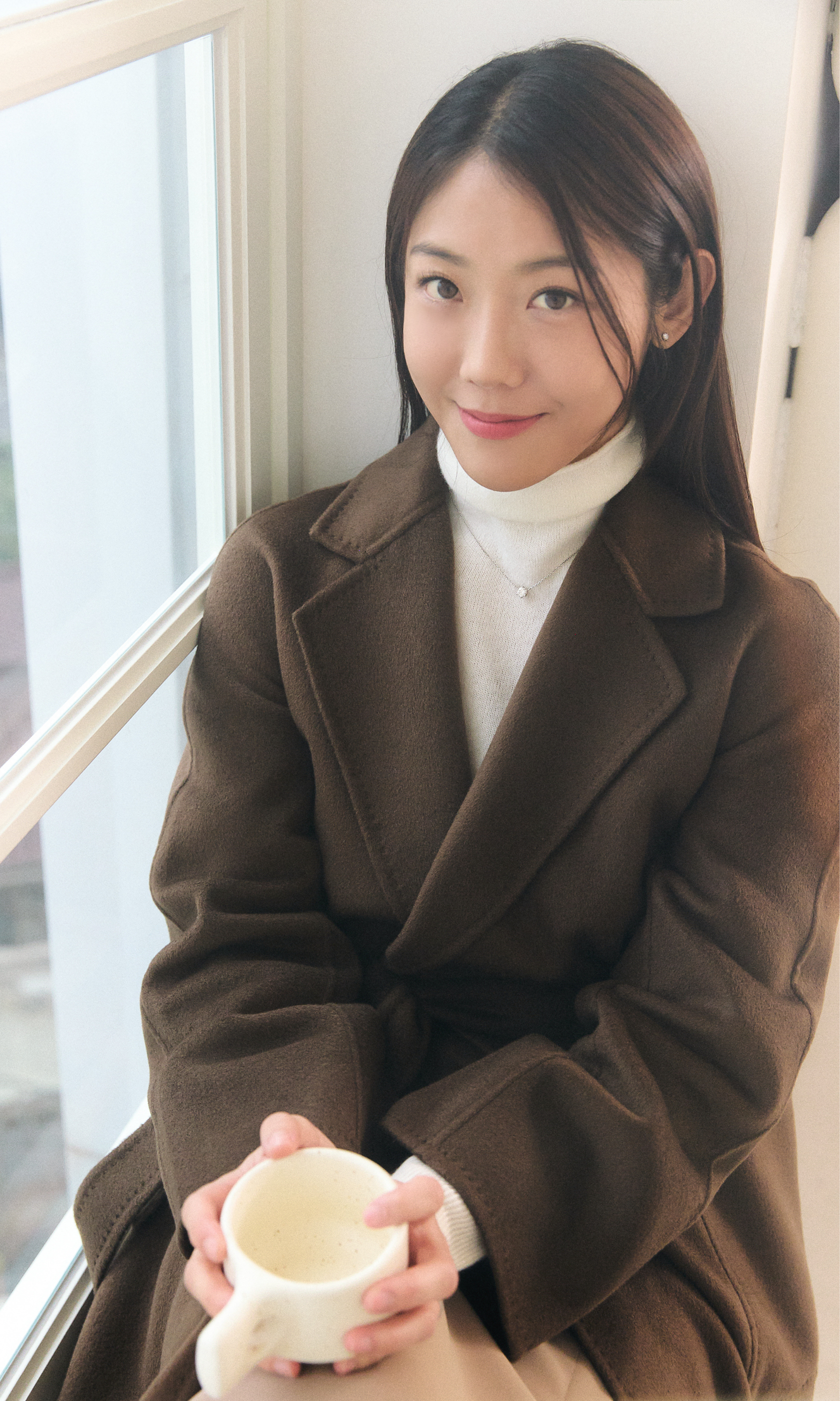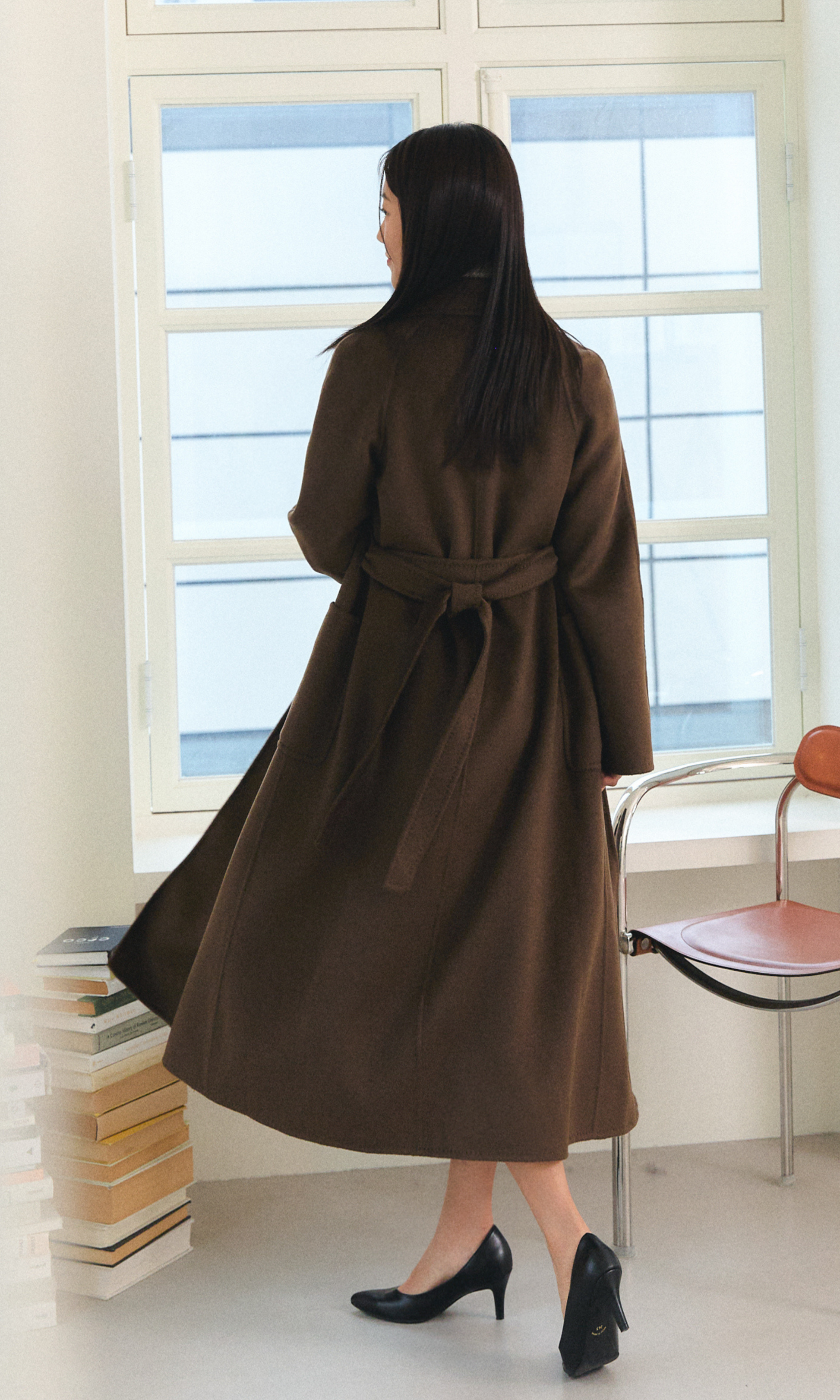 Ashberry’s bestselling winter coat, crafted with 75% premium cashmere and 25% virgin wool woven in-house. It’s incredibly warm yet surprisingly lightweight, with a rich color that shifts subtly in the light. The double-face construction gives the fabric a dense, crisp hand feel and a structure that holds its shape without collapsing. Two tightly woven layers are bonded together, creating a coat that’s light to wear while retaining exceptional warmth.