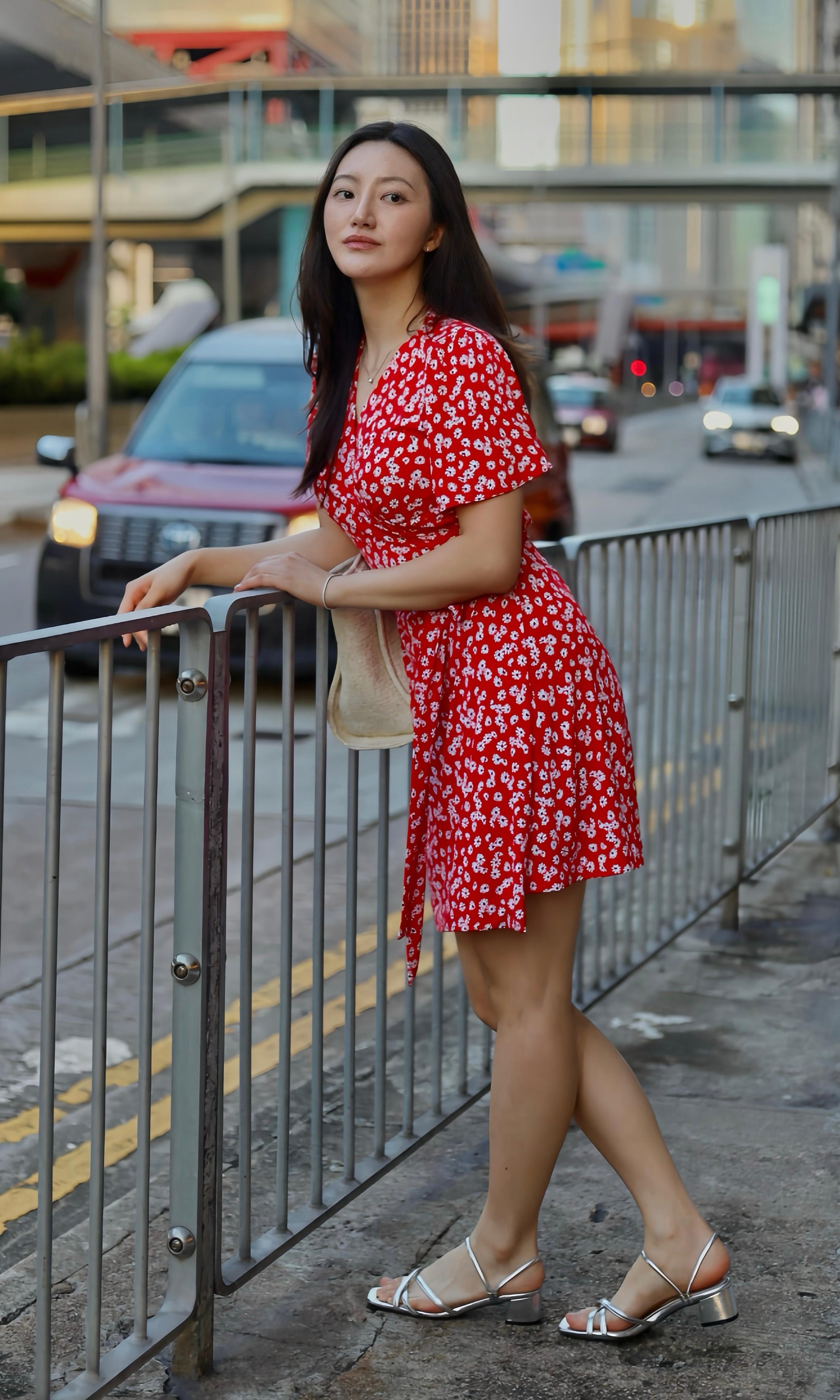 A lively coral red dress scattered with cheerful white daisies, giving it a bright and uplifting feel. The soft drape and easy fit make it as comfortable as it is eye-catching, perfect for adding a playful touch to your everyday style.