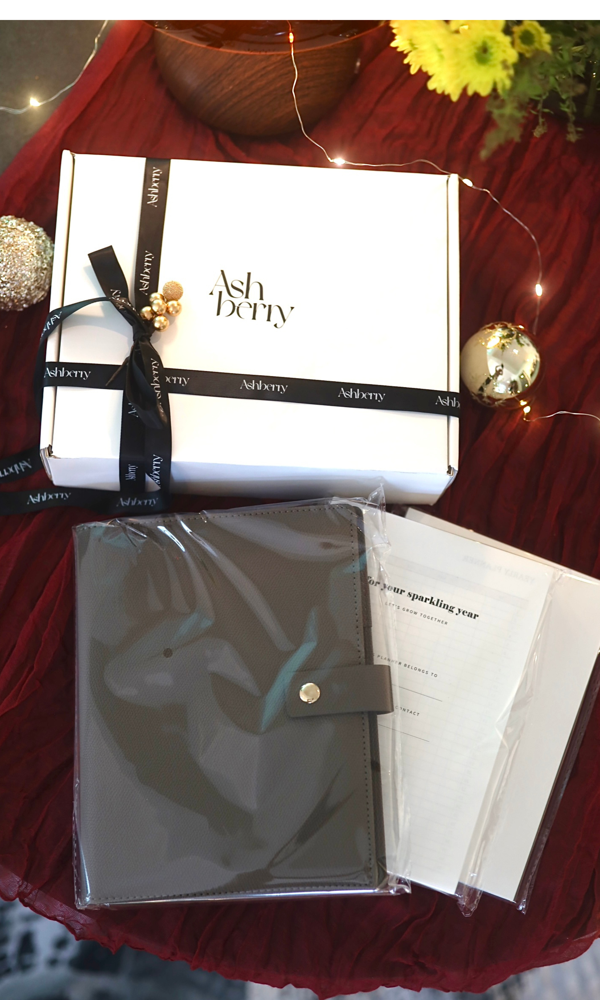 The Giftbox Dream Planner Set comes beautifully wrapped with a ribbon around the box. Please note that the festive ornament is reserved for in-person purchases, as its delicate design may not withstand shipping.