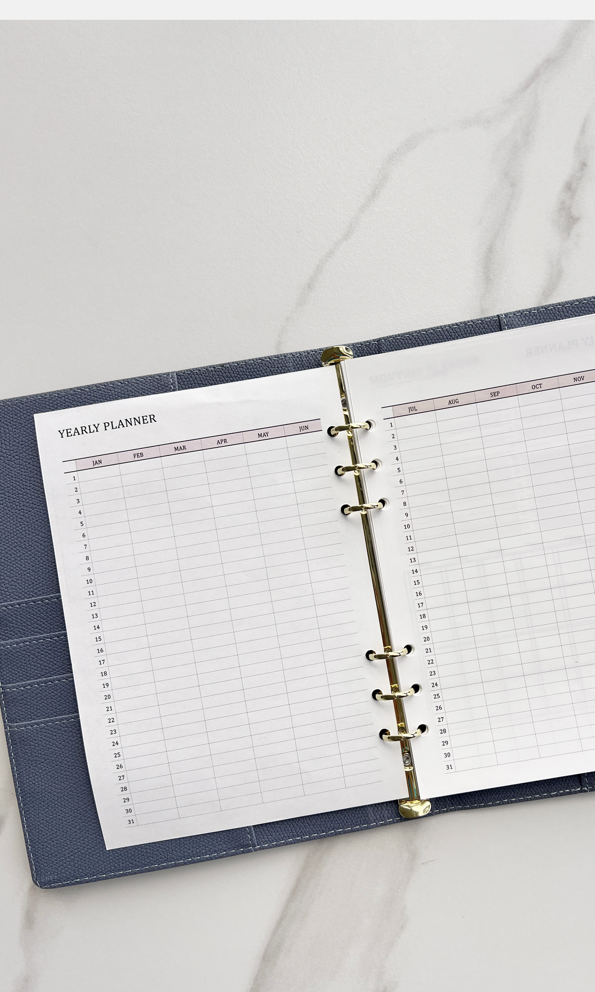 Set includes: A5 cover + 1 yearly planner refill (1 year) + 1 blank refill (100 sheets)