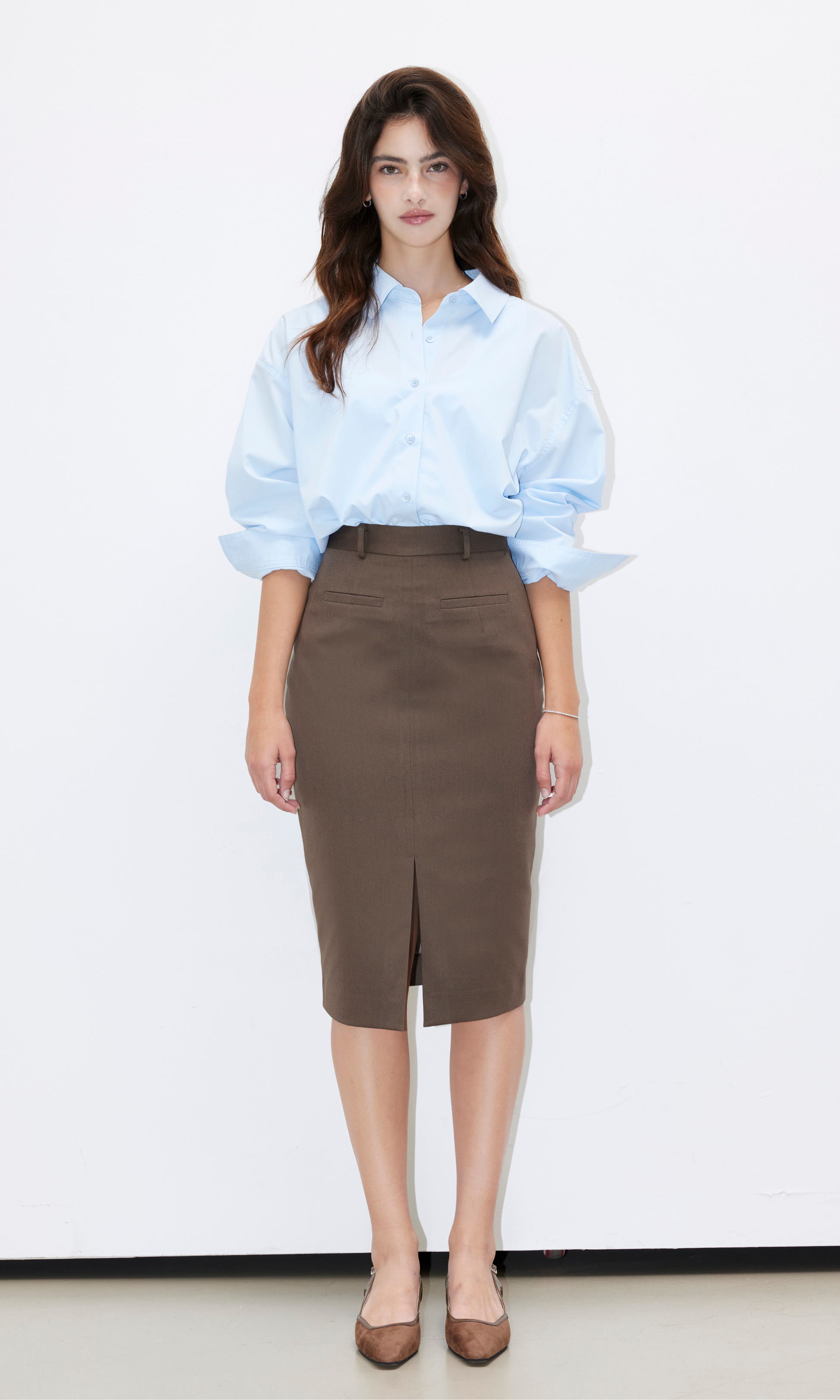 The Mina Pencil Slit Skirt is a refined essential that balances sophistication with feminine charm.