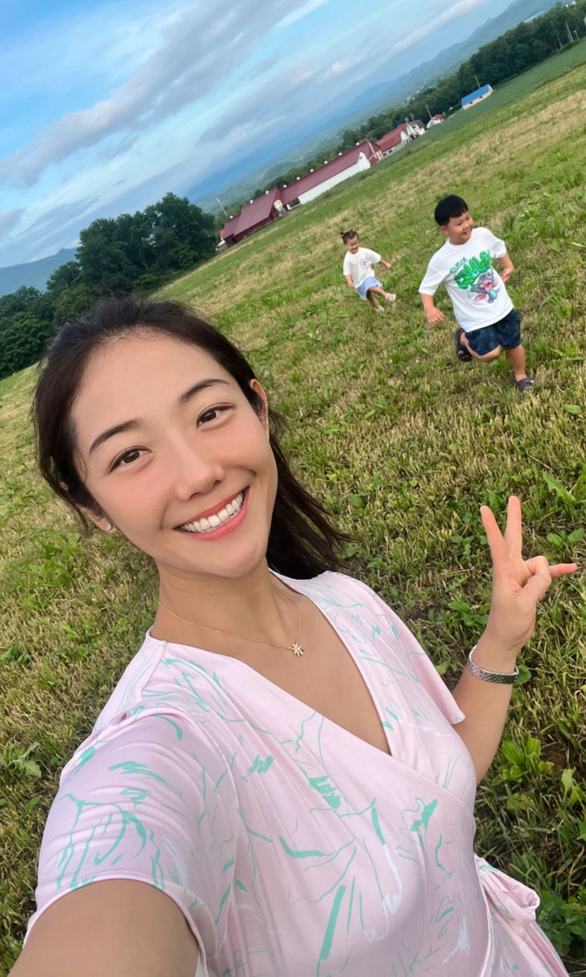 Inspired by lush summer landscapes in Niseko, this pastel pink wrap dress features a delicately scattered floral print in mint and white, like petals caught in a breeze. Lightweight with flowing bell sleeves, it’s the perfect piece to keep you feeling fresh from spring through high summer.