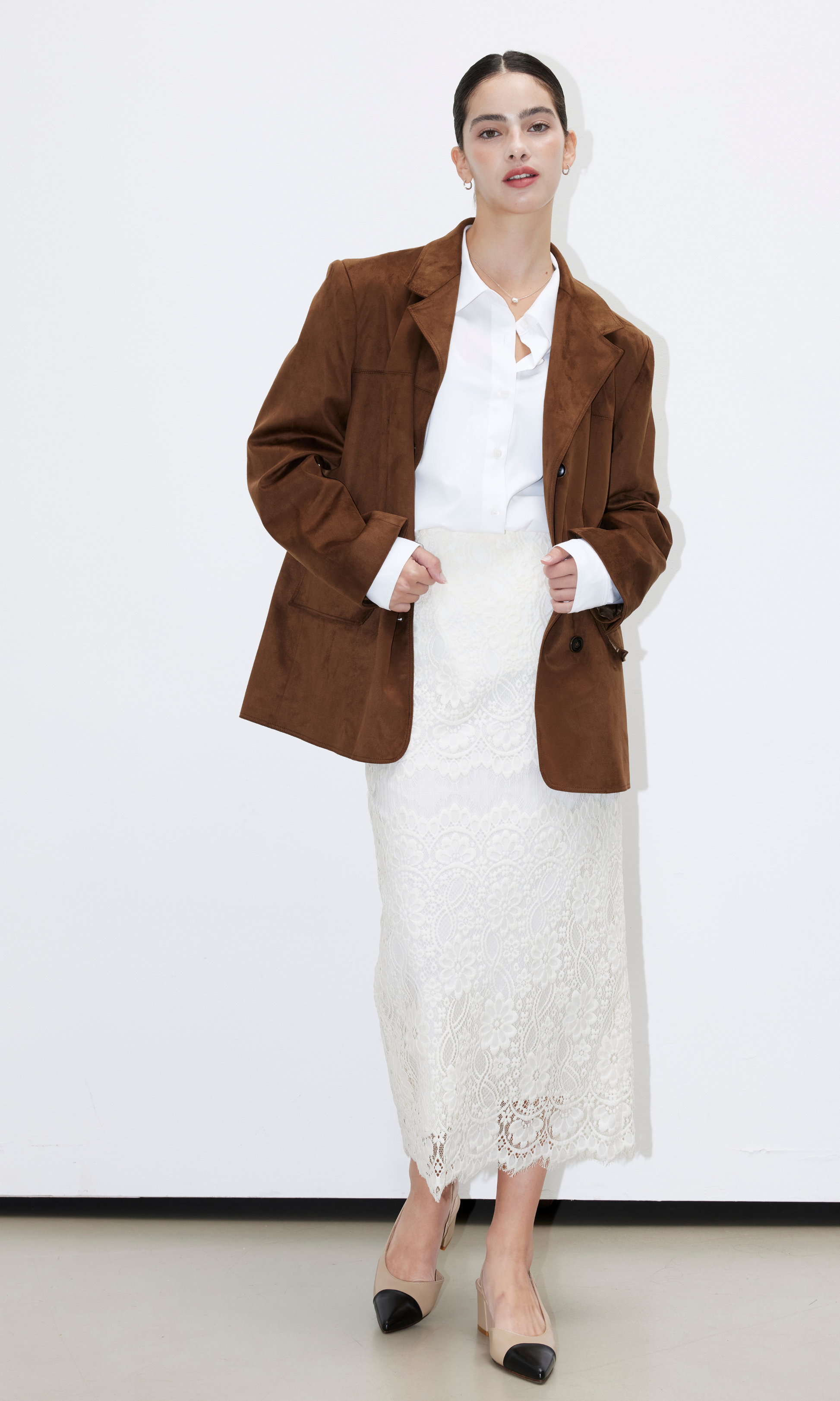 The Valexia Suede Jacket reimagines a classic staple: minimal yet sophisticated, it is a season-defining jacket made to last.