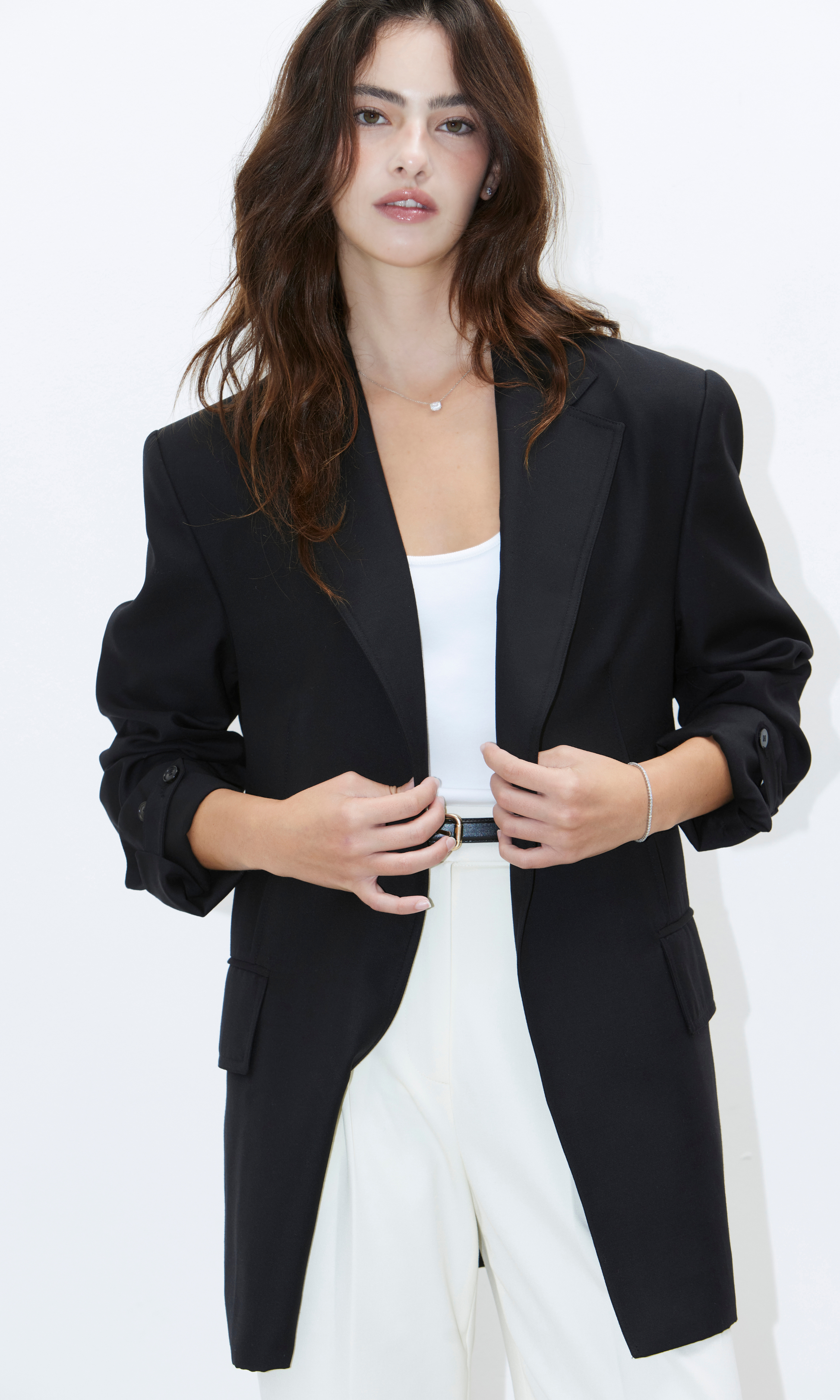 The wool tailored oversized blazer is a season-spanning jacket that elevates both everyday looks and special occasions.